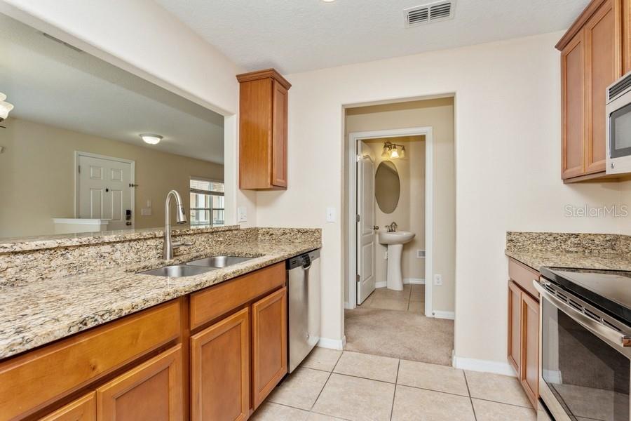 Maintenance Free! Not in a Flood zone! No CDD! Enjoy this 2 Story block construction townhome in desirable Trinity's Thousand Oaks East! Perfect for the first time home buyer, second home, or retirement home! This spacious and immaculate 3 Bedroom, 2.5 Bath model features 42" wood kitchen cabinets, granite countertops, stainless steel appliances, breakfast bar and tall 10' Ceilings. Plenty of room to entertain in this open floor plan, great room combo dining area, in addition to a convenient half bath all downstairs! Sliders off the dining room take you out to the inviting, private backyard. The laundry room is conveniently located on the 2nd floor, along with all of the spacious Bedrooms. The Master En-Suite features a tub-shower combo, granite counter sink with wood vanity, Linen Closet and a spacious Walk-In Closet. The 2nd floor also has 2 additional bedrooms. Double-paned, Energy Efficient Windows and Ceiling Fans throughout. Close to top rated schools, restaurants, golf courses, shopping, biking/hiking trails and medical facilities. Only 35 minutes to the airport and the nearest beach! Schedule your showing today, before this one is gone!